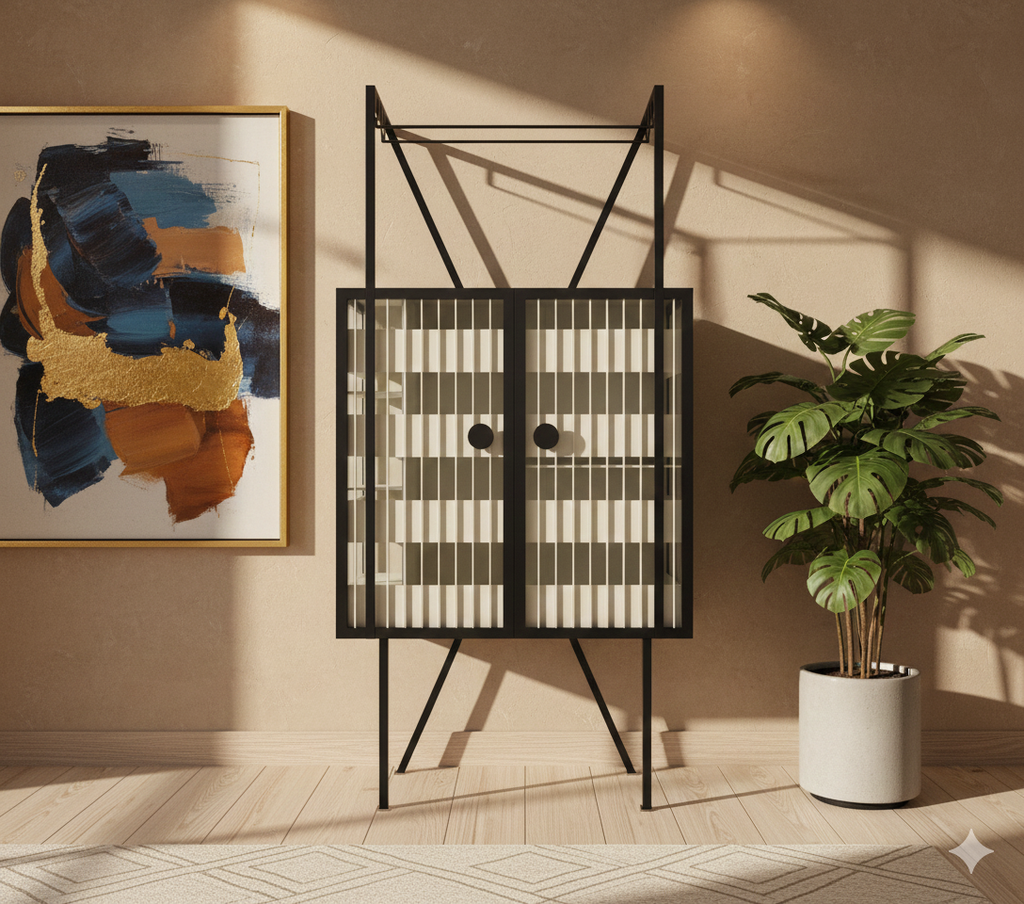 Metal Square Bar Cabinet in Matt Black and Ivory Colour