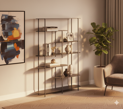 This 7-shelf etagere bookshelf for luxury display is ideal for storing or displaying books. The shelf's versatility also means utilized for a broad range of storage purposes without restrictions. Heavy-gauge metal construction ensures sturdiness and extended life. It has a lot of room for your favorite books to be on display. This innovative library bookcase is a creative design and space-saving solution for any room.