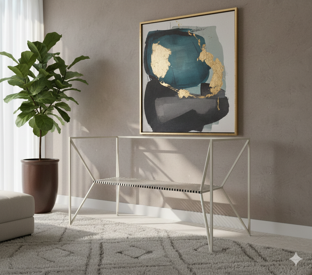 Frame Metal Bench in Matt Black and Ivory Stripes Colour
