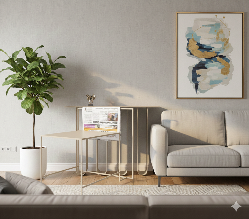 Our less is more Enzo Side Table could look really cool in your living room, or the dining and bar area as a corner piece. Beige powder-coated, this side table would be ideal for books, artifacts, planters, the side frame to hang a stole or a pull-over or just your everyday newspaper, and as a serving table too !!